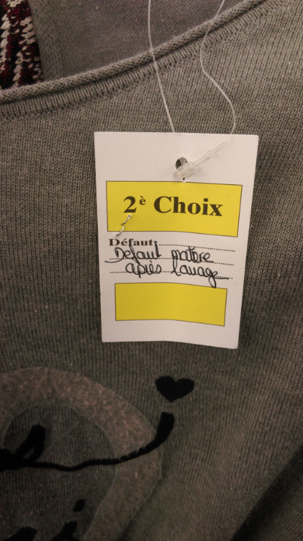 Секонд, но чтобы вы не сразу догадались, написано об этом по-французски ("Дефект: материал после стирки")