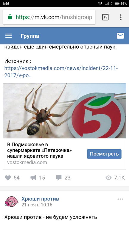 Продукты питанияНа всеобщей волне про пятёрочку наткнулась на движение хрющи против,по мимо просрочки в пятерочку нашли ядовитого паука в винограде!🤔
