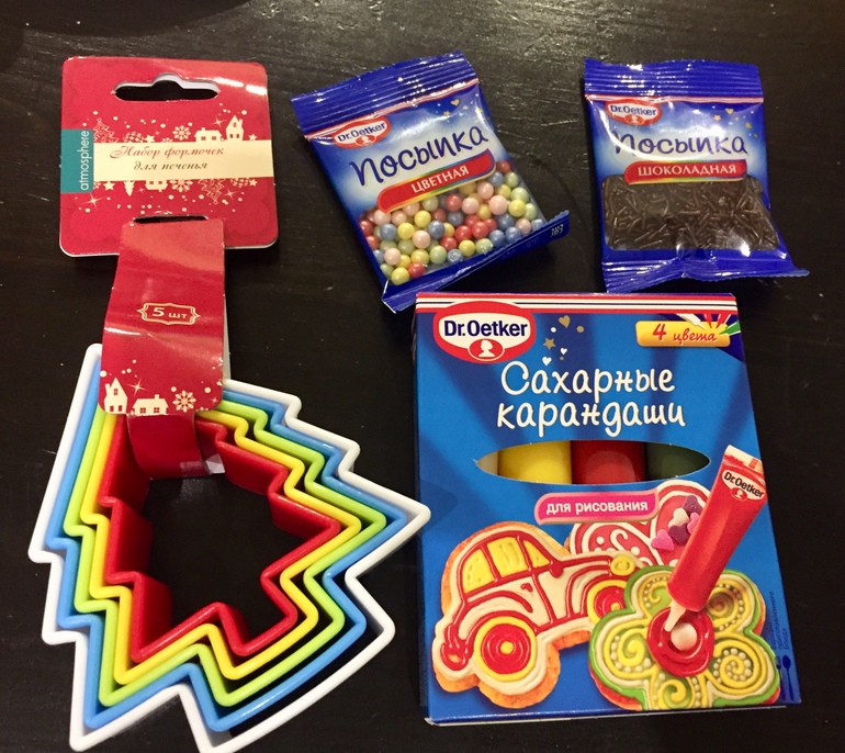 формочки-60 руб, сахарные карандаши-109, посыпки-19 руб.