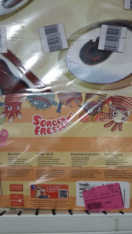 Потом увидела вот такие комплекты с интересной ценой и веселой расцветкой, но не решилась их взять.