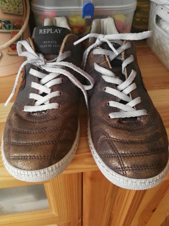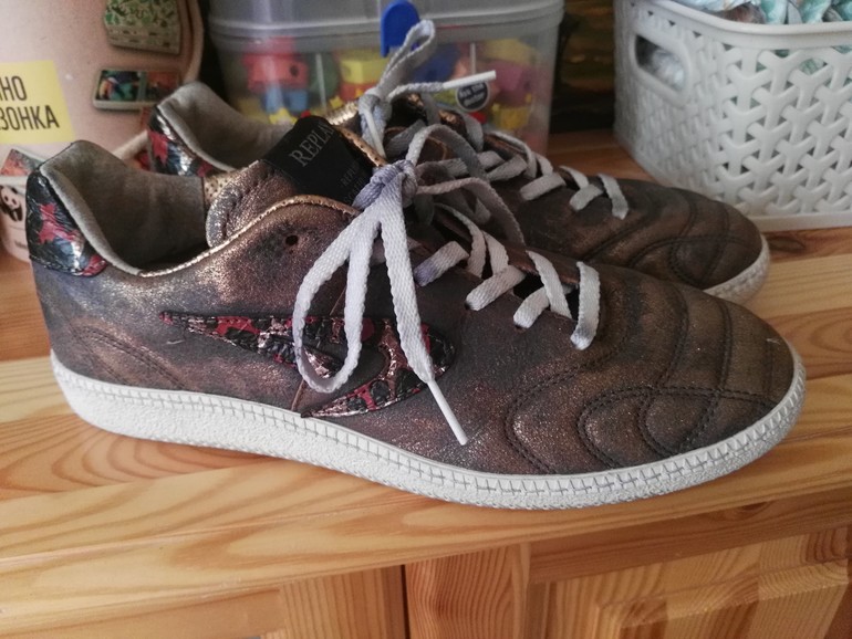 ну, и любовь с первого взгляда-кожаные кеды рипли, моего любимого серо-буро-пошкарябанного цвета, с позолотой) реплика 1972года...
