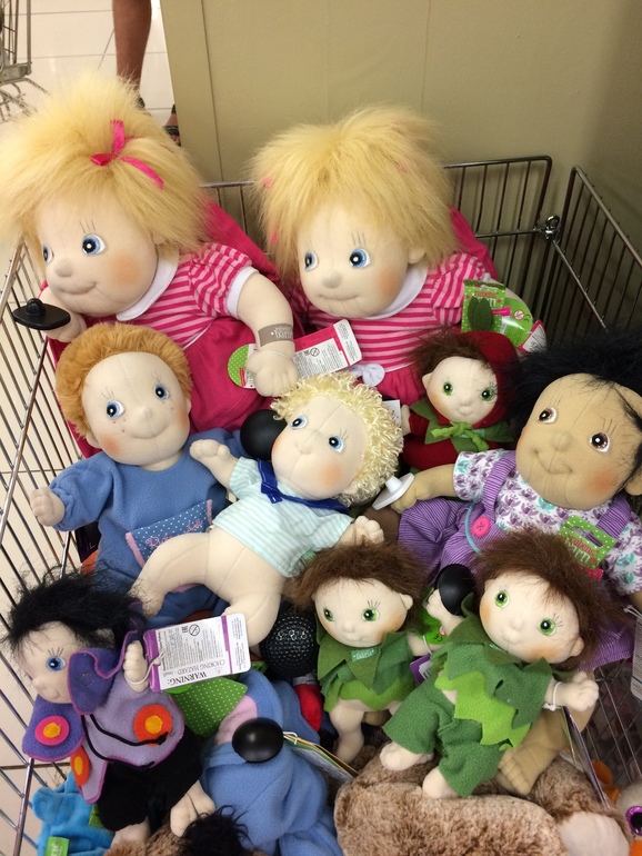 Мы тоже сегодня были в посадской Фамилии. Я померила только комбез Стефанель за 2 с чем-то тыщи, но он оказался какой-то странный. Вообще шмоток много, есть в чем покопаться. Но мы были с ноющими детьми. Прихватили только 4 чашки. Тряпичные куклы милые, кстати. Я вот на эту глаз положила за 700 руб, но дочка не оценила, ей сейчас нравятся большеглазки