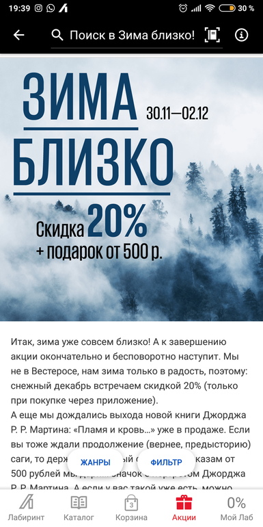 Это фото из приложения, я добавила в корзину книги и у меня автоматом применялась скидка ко всем книжкам. Может действует не на все книги? Меня детские азбуки интересовали. Попробуйте в приложении