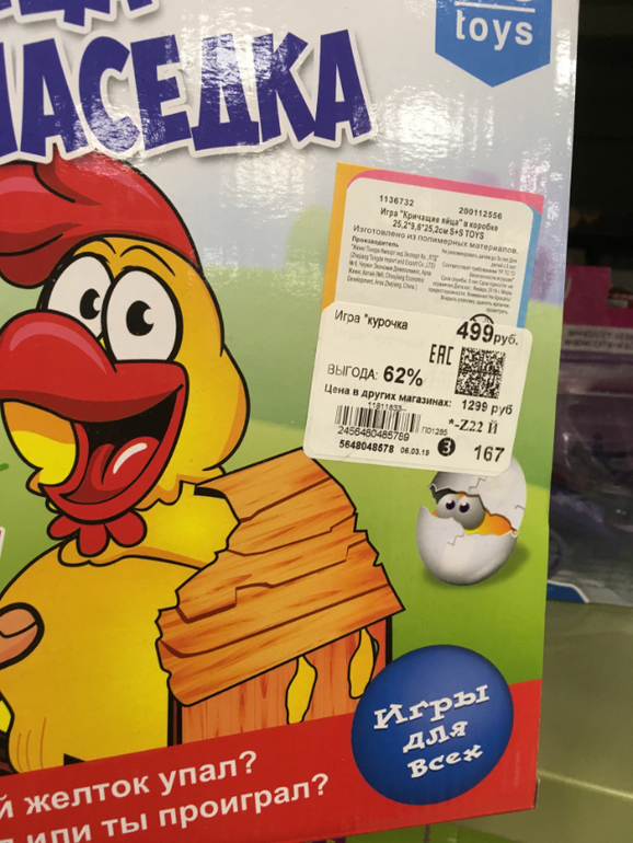 Сегодня вечерком зашла в нашу фамильку, одну из двух.В этой нет дорогих брендов,и вообще она не очень. Но сегодня купила там игру Cluedo большую версию за 699. Везде дороже.Поклонники,смотрите в своих фамильках