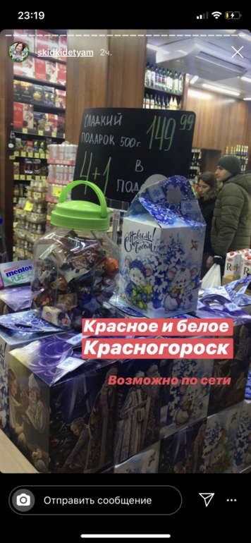 Не знаю, как в этом году, в прошлом году в таких коробочках хорошие конфеты были (ну относительно) - твикс, сникерс, чоко пай и тп. Я не покупала, нам как многодетным давали такие подарки и потом такие же (с картинкой конфет) в кб видела