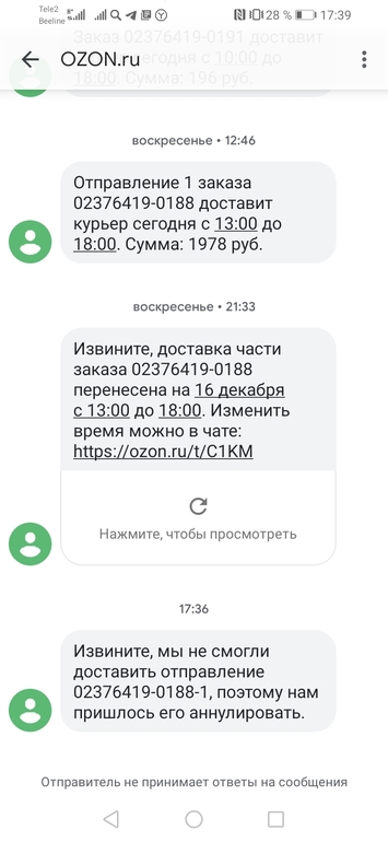 После того как упразднили телефонную линию поддержки это стал не озон, а катастрофа. У них ещё и сбои с адресом. Третий день переносят заказ. Оформила один заказ и увидела, что пропущено название деревни. Тут же оформляюсь второй- проверяю все досконально, делаю скриншот-что все правильно и... вуаля-снова исчезает населенный пункт. Операторы в чате... нет слов, это бесполезные существа. Отвечают долго, тут же покидают чат. Со следующим все заново. Только и сидеть ждать из ответов по полчаса разговор ни о чем. Предложили компенсацию в баллах... 100 баллов))) шедеврально. А на той неделе несколько раз отменяли крупный заказ. Упорно. Объяснения у каждого оператора разные. Чувствую, что и мой заказ отменят((( а там очень важный и уже посчитанный для родкомитета товар. Озооооооооон😭😭😭😭😭😭