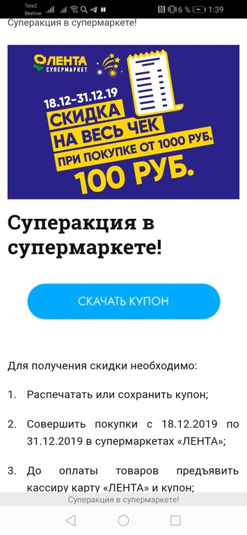 Там ещё купон на мандарины