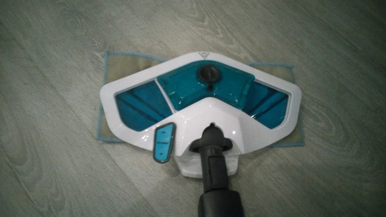 1. Мытьё полов без вопросов. Запустила робота-пылесос...собрал мусор. Далее насадкой для щелей прошлась вдоль плинтусов - выбила грязь. Ну и быстренько агрегатом как паровой шваброй. Сегодня я начала уборку с холла...и когда дошла до стадии швабры - обнаружила, что ребёнок куда-то дел тряпку. Времени искать не было (так как от углов всё выбила и не надо было дать грязи впитаться), на удачу взяла тряпку от моего обычного пылесоса - и она спокойно присоединилась. Да, форма другая, но в целом это нисколько не помешала.
