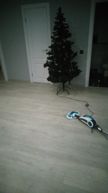Итог: 10 минут и холл 18 кв. м. сверкает чистотой. Без химии. Тряпку меняла 3 раза (благо у пылесоса их 4). Первая была просто чумазая, вторая слегка загрязнённая, третья фактически чистая. Так что четвёртый заход делать не стала. Резервуар для воды ещё был на треть полный. Шнура хватало не переключать - помыла часть комнат дочки и сына (как раз 4-ой тряпкой).