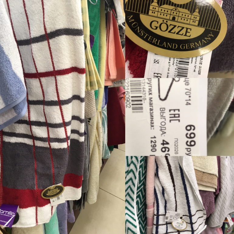 Полотенца Goezze некоторые в Индии сделаны, некоторые в Германии. Размеры разные. Самое большое 70*140 см.