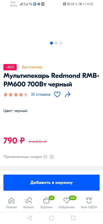 Мультипекарь Redmond без панелей по 790 рублей.