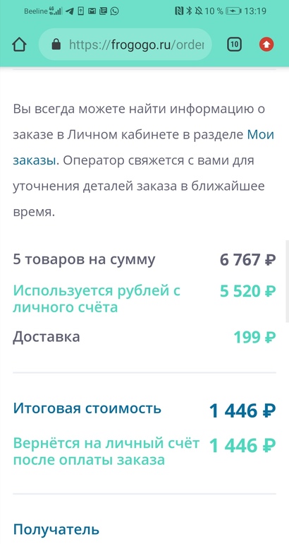 За все 1446 рублей вместе с доставкой ..остальное все списала баллами которых у меня почти 35000 накопилось