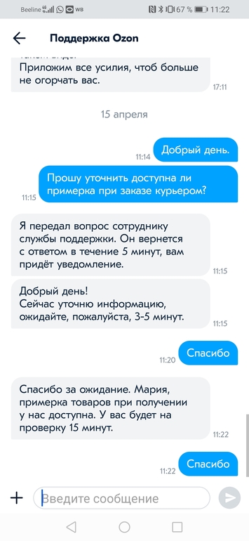 В ленте представитель Озона нам здесь сегодня сообщил, что примерка так и осталась 15 минут.