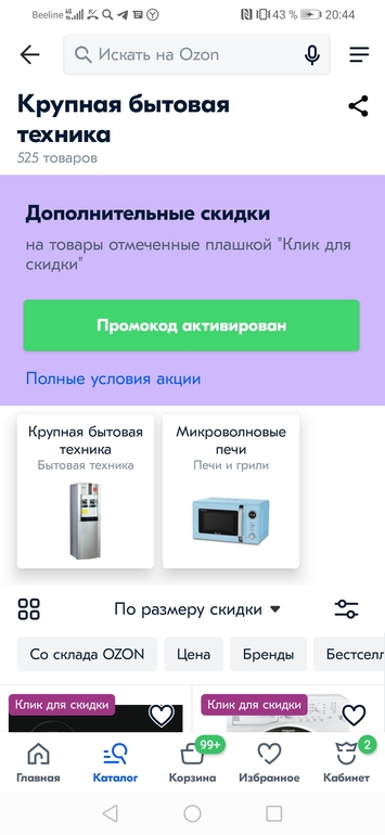 Дополнительная скидки применится на товары с плашкой "Клик для скидки"