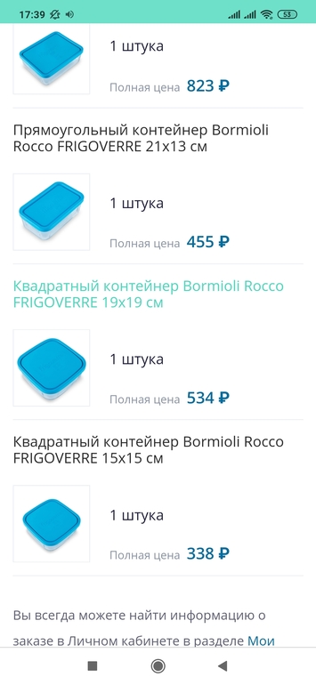 Девочки, привет! Получила заказ, принесла домой, а все! все контейнеры с браком или надбитые. Причем упаковка у них отменная, а битые контейнеры вверху, под крышкой. И очень пыльные, в пункте выдачи не сразу и заметишь. Частичного выкупа нет. Чтобы вернуть или обменять, нужно писать письмо им на почту. В ответ, как сказала оператор, придет ответное письмо с номером обращения, но оно не приходит. Чего ждать, не знаю.