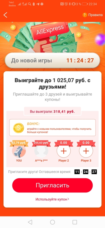 Я получил(а) 255,63 руб. в игре Купон по дружбе. Присоединяйся и выиграй до 1 025,07 руб.!