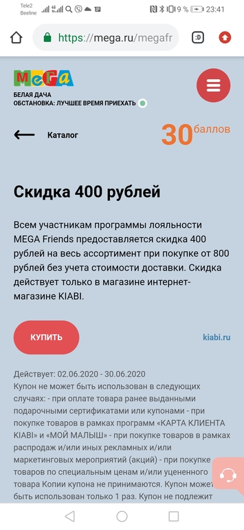 Скидки и акции (для всей семьи)https://mega.ru/megafriends/catalog/KIABI_4/belaya_dacha/