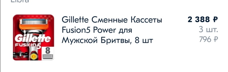 Много кассет gillette по акции 2 равно 3, а ещё скидки. Это пример.