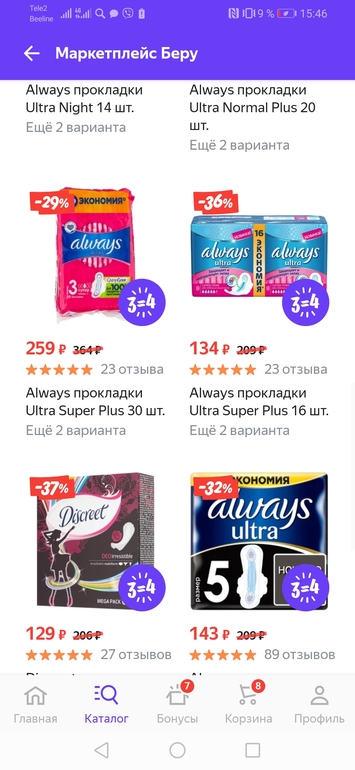 Скидки и акции (для всей семьи)В разделе Женская Гигиена не совсем плохие цены по о акции 3 равно 4