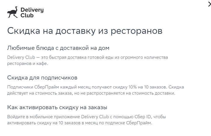 Не нашла Delivery Club. Ткните, где написано, что дает скидку в Деливери