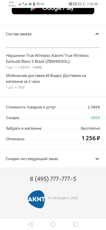 Должны дать кэшбэк : 5 процентов стандартный Мвидео, 10 процентов за онлайн оплату и 400 баллов за выбор быстрой доставки (должны завтра привезти, посмотрим)