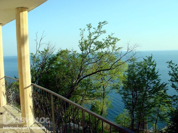 15 минут на маршрутке до аквапарка АкваЛоо. Полупустой пляж, нет впадающих речек, чистое море в 60 метрах, 2300 руб за номер со всеми удобствами и вот таким видом с вашего балкона http://www.babyblog.ru/user/lenta/sochipearl