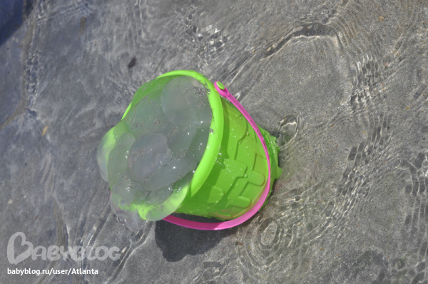 о даааа!!! счастье для ребенка - иногда к нам приплывали медузы, много медуз!!!! (Костя их называет Дедузы) он их складывал в ведерко с горочкой))))))))))))) и заставлял нести их с собой к бассейну!!!!!!!
