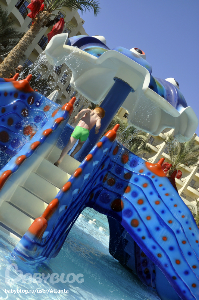 отель состоит из комплекса трех отелей. у нас была классная горка, с которой мы и сами гоняли вместе с детьми))) а еще устраивали водные бои из пистолетов)))) было весело)))