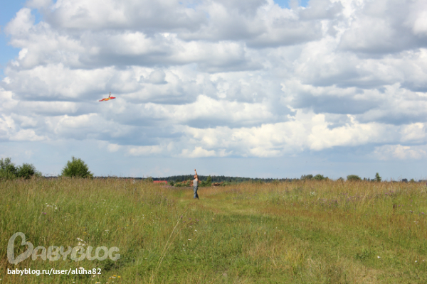 Собирать ягодки нам быстро надоело и мы пошли на поде запускать змея. Для наших детишек это было намного интереснее.