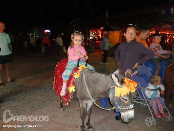 Это ослиха Тина, а еще мы катались на лошадке Теме.