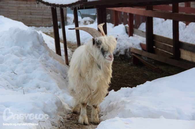 Есть небольшой зоопарк-олени, козочки, пони и собака. Козлёночка дают подержать, погладить.