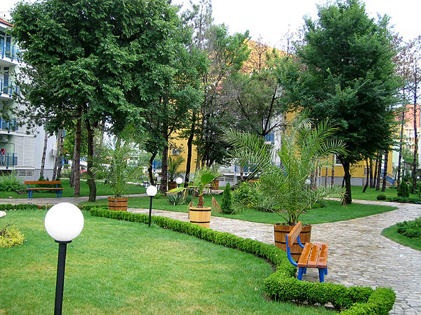 Территория комплекса: 2 бассейна (ежедневно работает спасатель, который следит за детьми) + водная горка ,бар ,ресторан,барбекю, тихое,зеленое место для прогулок и вечерних посиделок, детская площадка.