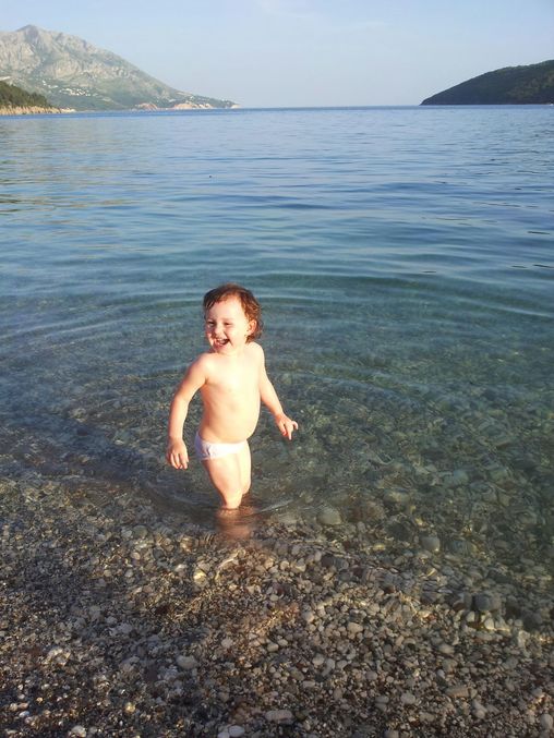 шли из сада (в будве) уже вечером (около 19 часов), дети не смогли пройти мимо моря, полезли в чем есть