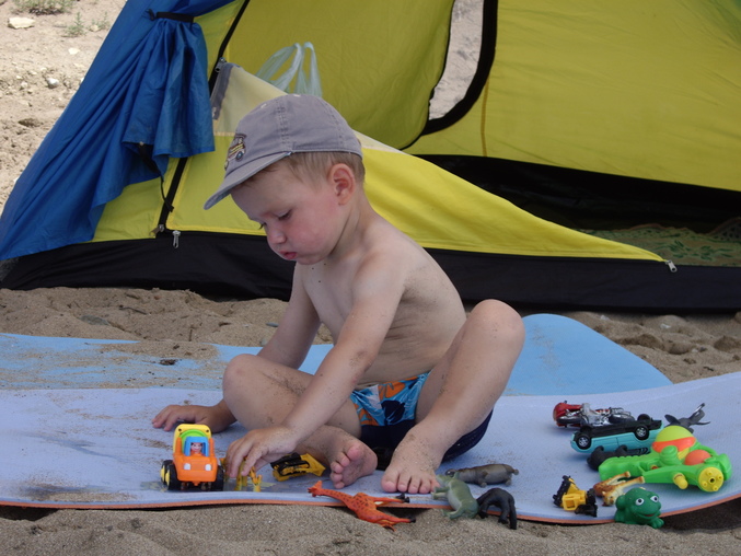 отдыхали примерно 10 дней. На пляж с собой палатку брали, кормила и укладывала на дневной сон прямо на пляже. иногда на пенке в тени. термос с кипятком брала всегда с собой, кашу ел из пачек.