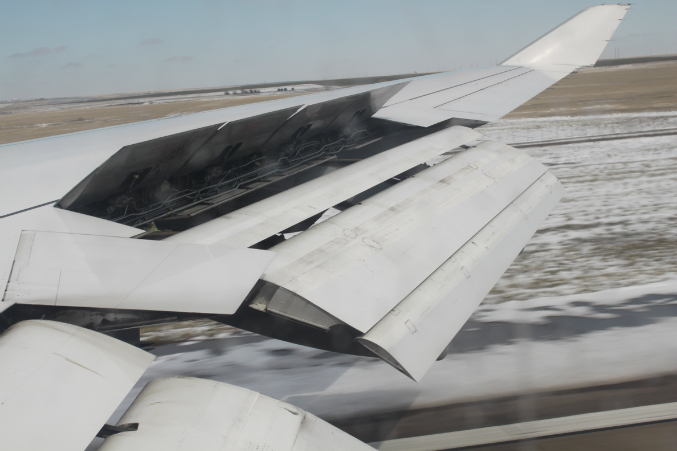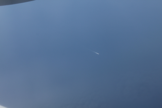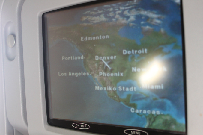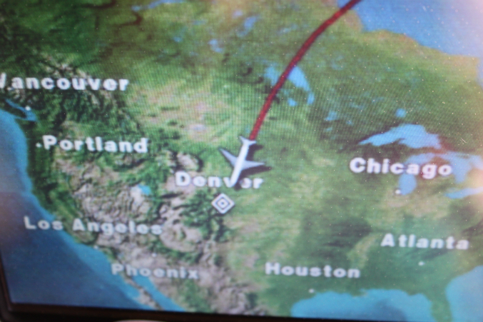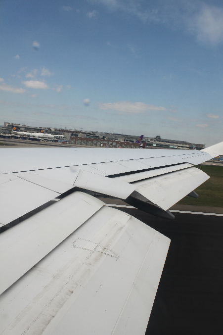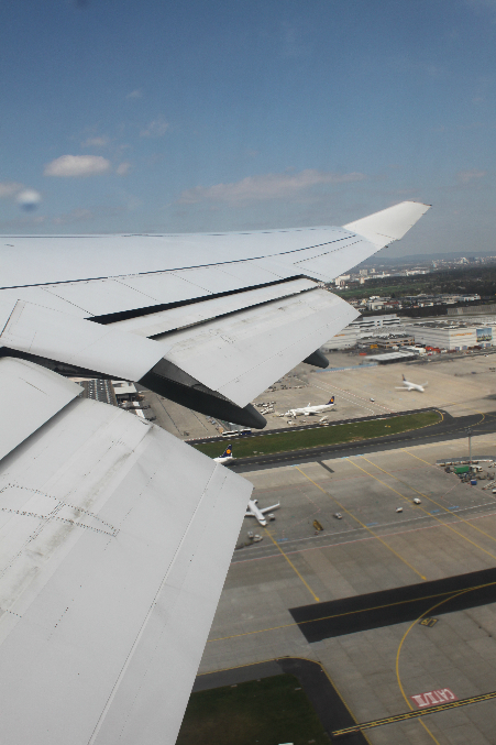 На взлете хорошенько тряхонуло,когда у самолета был разгон.Я не боюсь летать,но тут мне как то хреновастенько стало...за секунд 20,что нас трясло и бросало по ВПП, я успела подумать,что рядом автомагистраль и у нас полные баки горючего.Слава Богу,мы все же взлетели и потом полет проходил спокойно и легко.Самолет был все тот же Boing 747-400.Чистенький и аккуратненький.Стюардессы попались более улыбчивые и вежливые,чем на перелете из Денвера во Франкфурт.На этот раз ребенку дали только карандаши и все...и где мы должны были ими рисовать?Ну и парачка фоток с нашего взлета...