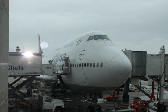 Авиакомпания. Авиабилеты. Ж/Д транспорт.Решила поделиться своими впечатлениями от полета а/к Люфганза (Денвер,США-Франкфурт,Германия-Денвер,США) в апреле 2013 года. Долго решали,как долететь из Денвера до Франкфурта и остановились на Люфганзе. Прямой рейс и 1200$ билет на человека. Никаких скидок на ребенка 2 лет,хотя российские а/к хоть процентов десять, да скинут. Плюс,детское автомобильное кресло считается как багажное место(при полете тем же самым Аэрофлотом и американскими авиакомпаниями,коляску и сиденье перевозят бесплатно и это не входит в основной багаж).Ну да ладно,билеты купили на сайте а/к ,сразу же забронировали места и сделали спец.заказ на еду ребенку.Отдать должное, выбор меню впечатлил:питание для совсем маханьких деток(пюрехи),питание для детей(его то мы и заказали),низкокаллорийное,веганское,диабетическое и питание для "религиозников". В общем, 16 апреля в 17.40 у нас должен был быть вылет.В аэропорт приехали за 2,5 часа до вылета. Быстренько прошли регистрацию и пошли на личный досмотр,а оттуда к выходу на посадку...собственно наш красавец-самолет Boing 747-400...