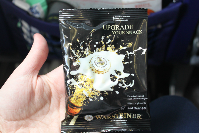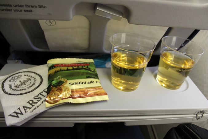 Ну а после набора высоты стюардессы засуетились и через несколько минут мы уже жевали снеки запивая яблочным соком...папа наш взял все тоже немецкое пиво.