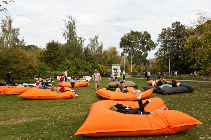 Выпив парочку Ашотов))), мы отправились в Парк Горького, посмотреть как там все изменилось за последнее время. Я там не была с 2010 года и была приятно удивлена! Так все чисто! Ровные газоны, везде лежаки интересных форм и расцветок, люди загорают, катаются на велосипедах, роликах, играют в пляжный волейбол. В общем, вполне себе европейский парк! За все время мы не увидели там ни одного пьяного человнка, никого с бутылкой пива даже не встретили, а раньше такие личности там на каждом шагу встречались!)))