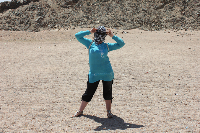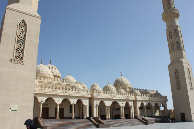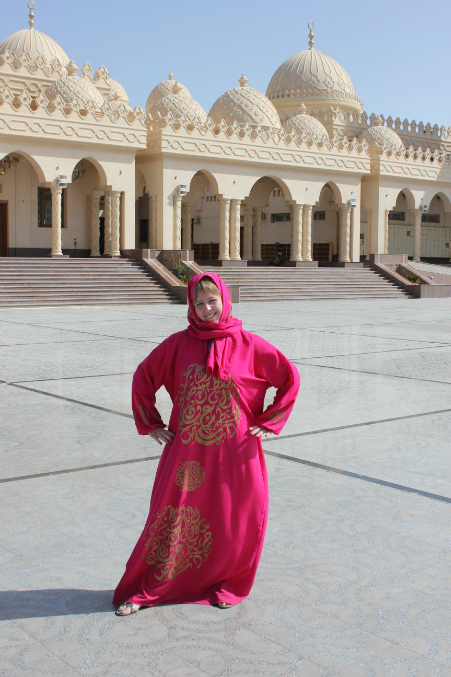 Вторая остановка была в главной мечети Хургады. Там нас попросили одеть вот такие вот платья, а также нужно было всем обязательно снять обувь.