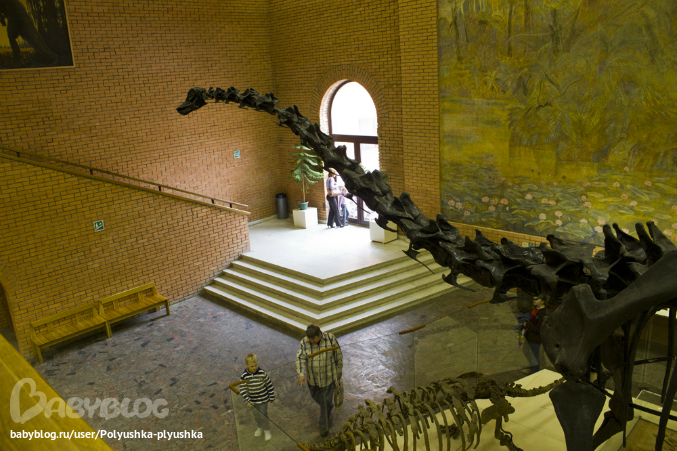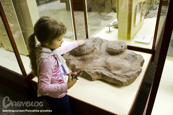 Чем занять ребёнка в поездке?На волне Плюшиного интереса к динозаврам, мы посетили Палеонтологический музей. Добирались долго. Место попсовое, продают попить-перекусить (хотя, кафе сейчас на ремонте), в холле куча тематической литературы, игр, игрушек и сувениров. Нам понравилось. Мы сходу купили единственного розового игрушечного динозавра, которого Плюша сразу назвала Катей, и начали осмотр достопримечательностей. Прогуляемся вместе.