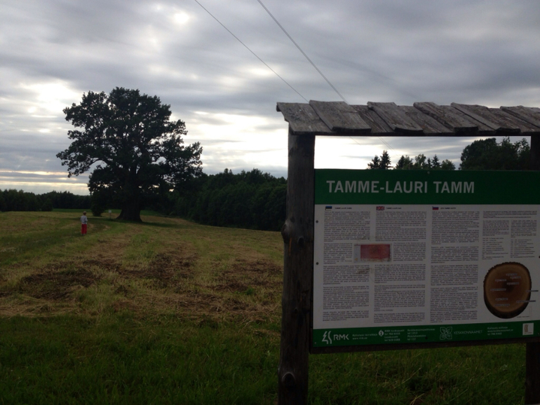 Ну и напоследок мы решили заехать посмотреть на самый большой эстонский дуб, о чем не говорят, а кричат все местные рекламные брошюры. Дуб этот примечателен тем, что ствол его 8,25м в обхвате, лет ему почти 700 и его фотография долгое время красовалась на десятикронной эстонской банкноте. Так-то вот! Дуб был по дороге домой, мы к нему сходили, сфотографировались, подивились размерам и усталые поехали домой.