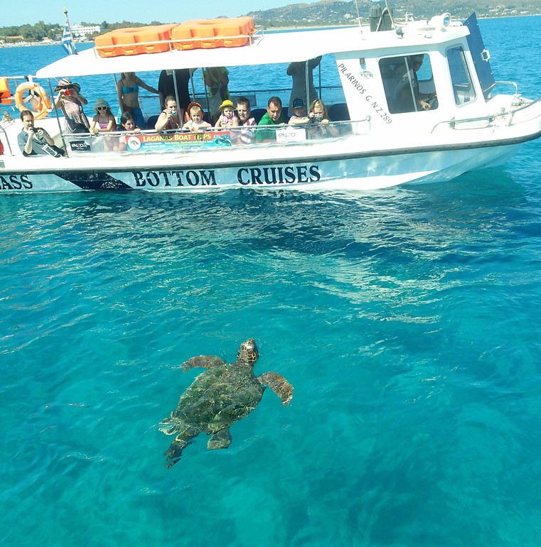 Еще одна экскурсия, без которой не обойтись - черпашки в Лаганасе. Вот она всплыла подышать. Черепаха каждые 40 минут всплывает вдохнуть воздух, причем не один раз, а раза 3-4 вдыхает. Подплывать близко к ним не разрешают даже просто в масках. Жалко черепашек((( не дают им спокойно яйца откладывать.