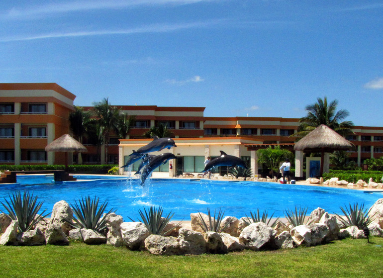Популярно в Мексике плавание с дельфинами. Только лучше не брать его на территории отеля (во многих отелях есть свои бассейны с дельфинами) - бассейны там совсем маленькие, будет не так интересно.