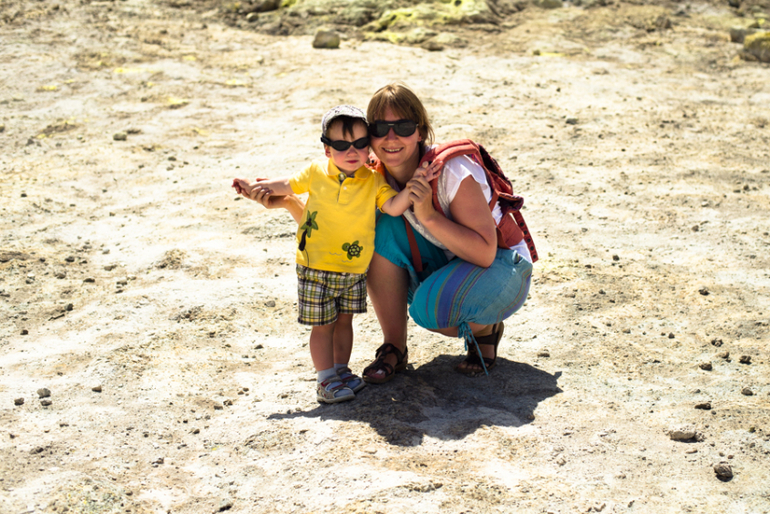 Могу сказать, что двухлетний ребенок перенес поездку отлично. Я бы сказала - лучше, чем взрослые:))) На пароме мы с мамой хотели уже только сесть (а лучше лечь), а Мишка носился, как ни в чем не бывало. Дневной сон он поспал на мне в эргошке. Никаких отрицательных последствий от посещения вулкана (типа головной боли) ни у кого из участников авантюры отмечено не было :)