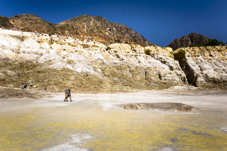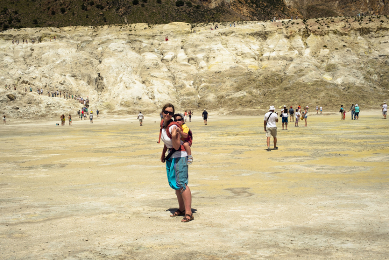 В общей сложности в кратере мы провели минут 15. Там жарко и пованивает сероводородом. Но впечатления невероятные! И у взрослых, и у ребенка. Для Миши это самое сильное впечатление из всего отпуска (куда там морю!). Он до сих пор всем рассказывает, что Нисирос - это вулкан, он спит и дышит :)))