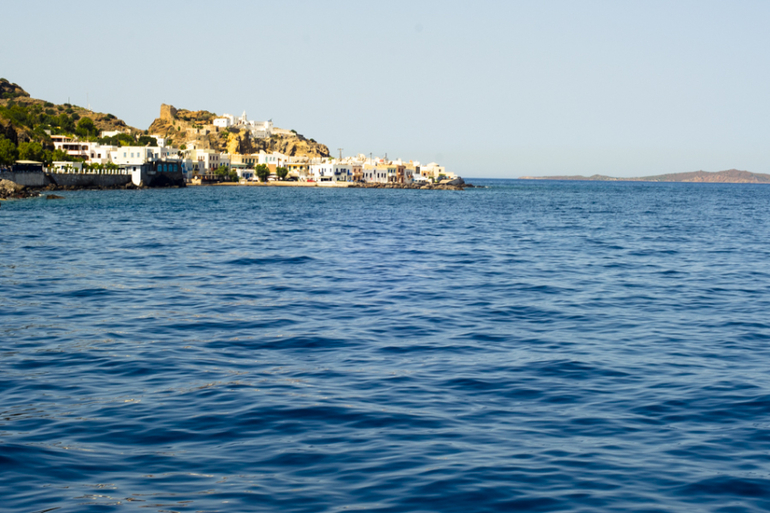 За кормой остается Кардамена. Цвет моря на фото соответствует реальности :)