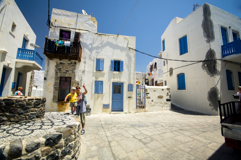 На Косе, где мы провели 2 недели, деревни построены в так называемом итальянском стиле. Там нет сине-белых домиков, которые ассоциируются с островной Грецией. А на Нисиросе есть :) Так что ближайшие 3 часа прошли у нас под знаком непрерывного "мимими!" Текст тут лишний, так что просто прогуляйтесь с нами :)