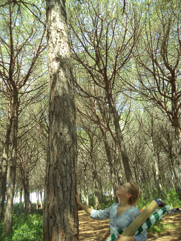 подход к морю через сосновый лес. сосны не как у нас-там такие широкие кроны.