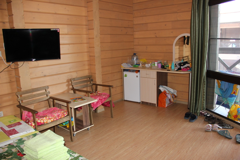 Сам отель сделан из дерева, очень красиво. Номера и на первом этаже и на втором. Мы сами жили на втором этаже. Мы бронировали в марте месяце номер. И мы просили, чтобы мы жили на втором этаже. Хозяйка все учла и нас поселили на втором этаже. Это радует.