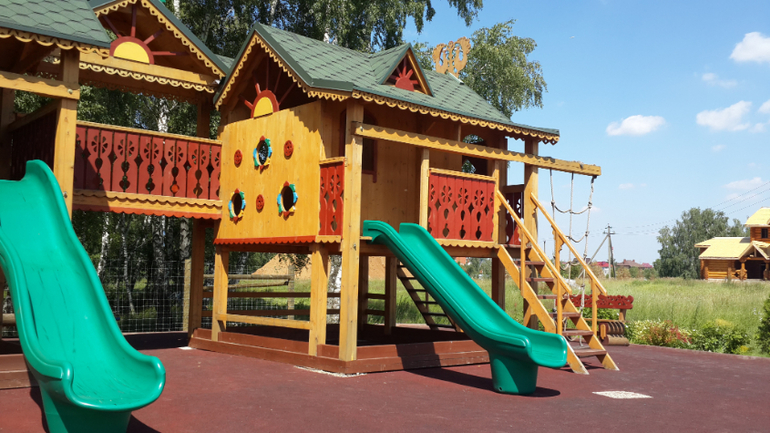 Очень даже приличная детская площадка. А позади нее зоопарк: лось, кенгуру, лани, разные птицы. Подруга сказала: "Так странно.. сидишь на лавочке, птички поют... кенгуру проскакала.. ")))